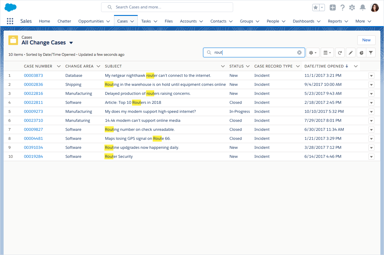 With in-context search, users can refine content on a page to find the correct information without having to context-shift and navigate away when using global search. Core examples of in-context search are in list views and feeds.